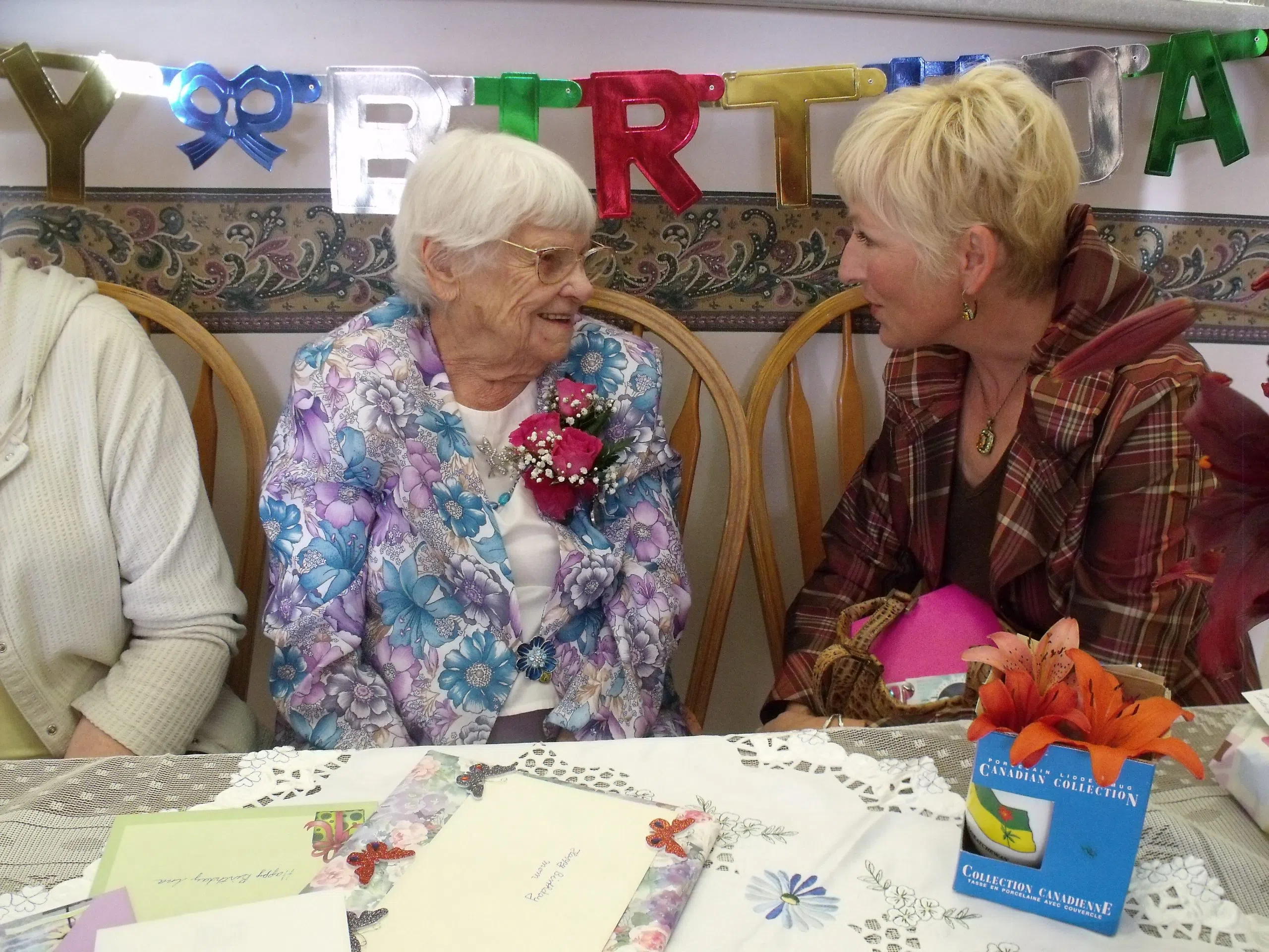Photo: Ina Barker, 105, speaks with Saskatchewan Rivers MLA, Nadine Wilson.