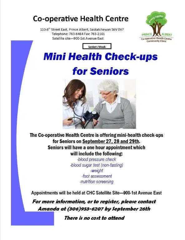 The Prince Albert Cooperative Health Centre is hosting Mini Health Check Ups for Seniors.