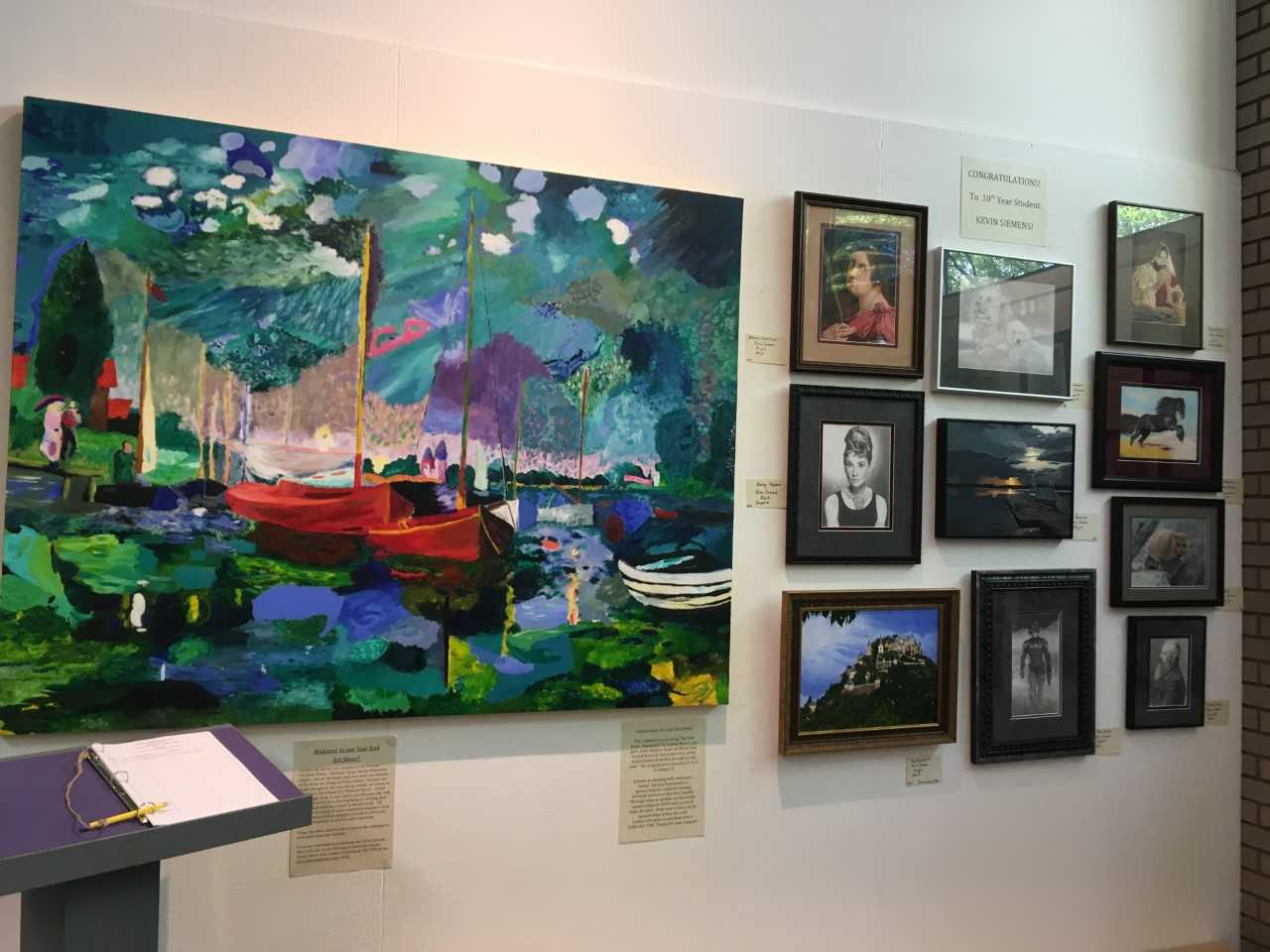 The library’s gallery is featuring work from students attending Christina Thoen’s Art School. The school’s students range in age from eight to 75. The student’s created their work with guidance from Thoen, who has been running her art school since 1995. Theon said the work on display is truly impressive.