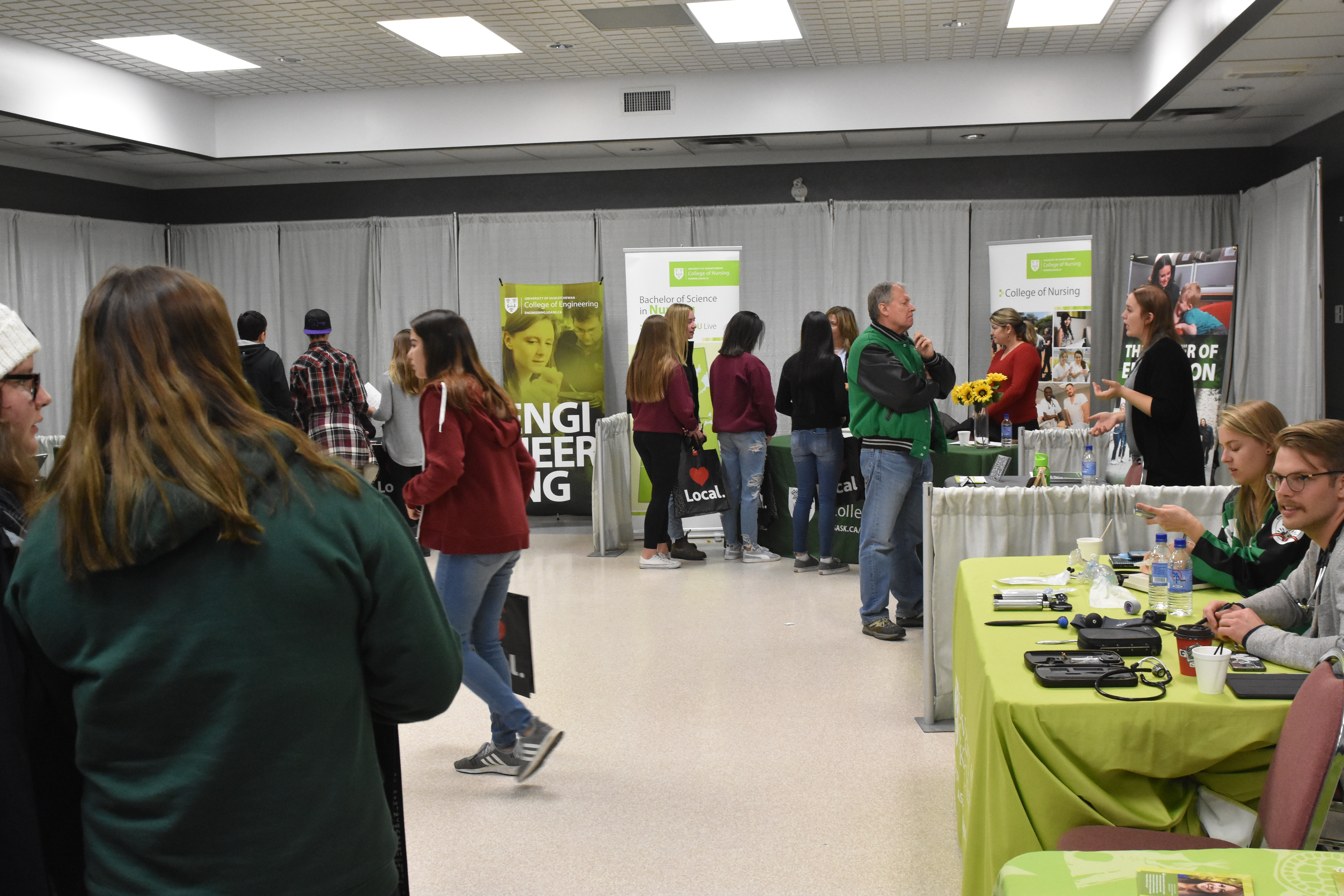The University of Saskatchewan had a number of booths set up. (Michael Joel-Hansen/paNOW Staff)“We have over 60 displayers this year and we anticipate seeing about 2,500 students from Prince Albert and surrounding area,” Patricia Bibby, a high school learning and data consultant and committee chair for the event, said.