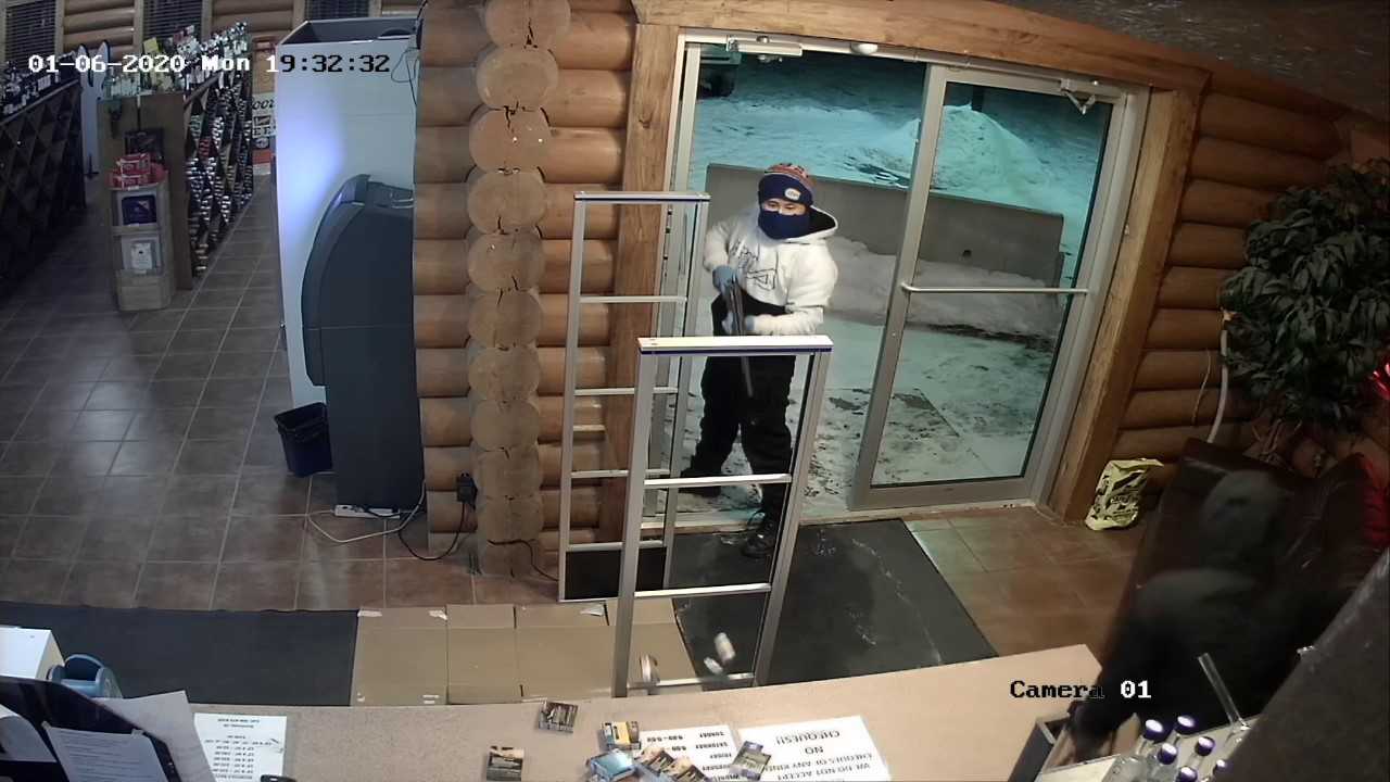 Police say one suspect, believed to be a male, was armed with a firearm. He wore a white and black hoodie, black ski pants, a Montreal Canadiens toque, and light blue gloves.