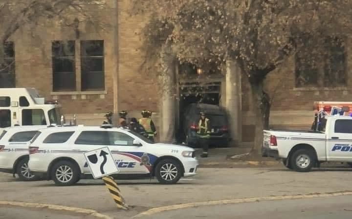 Once on scene firefighters discovered a vehicle was lodged halfway through the back entrance of the courthouse building.