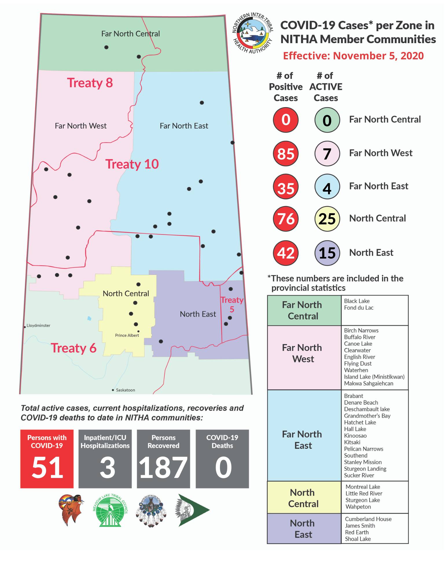 The latest numbers specific to NITHA communities as of Nov. 5. (Submitted photo/NITHA)