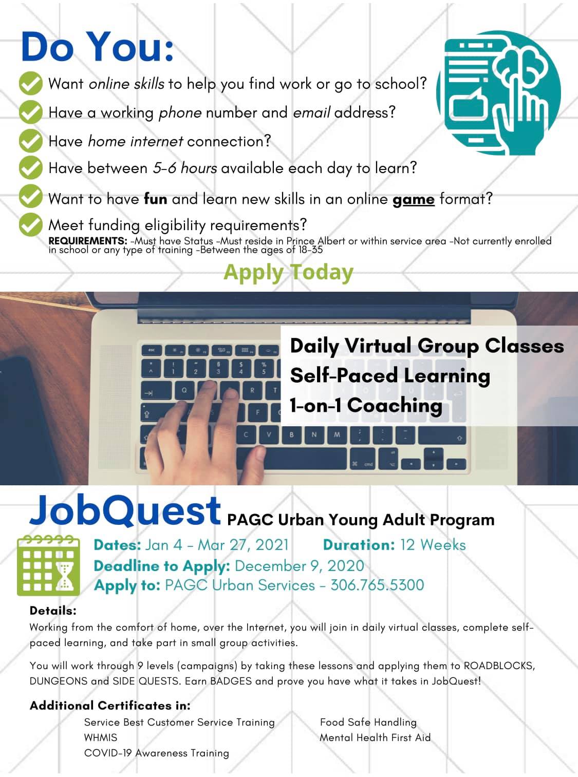 We are currently accepting applications for our online JobQuest Program which is set to begin in January