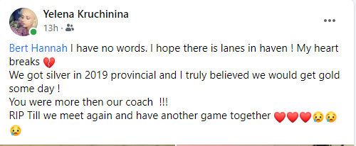 Hannah coached both provincial and national teams during his time at the bowling alley. (Facebook)