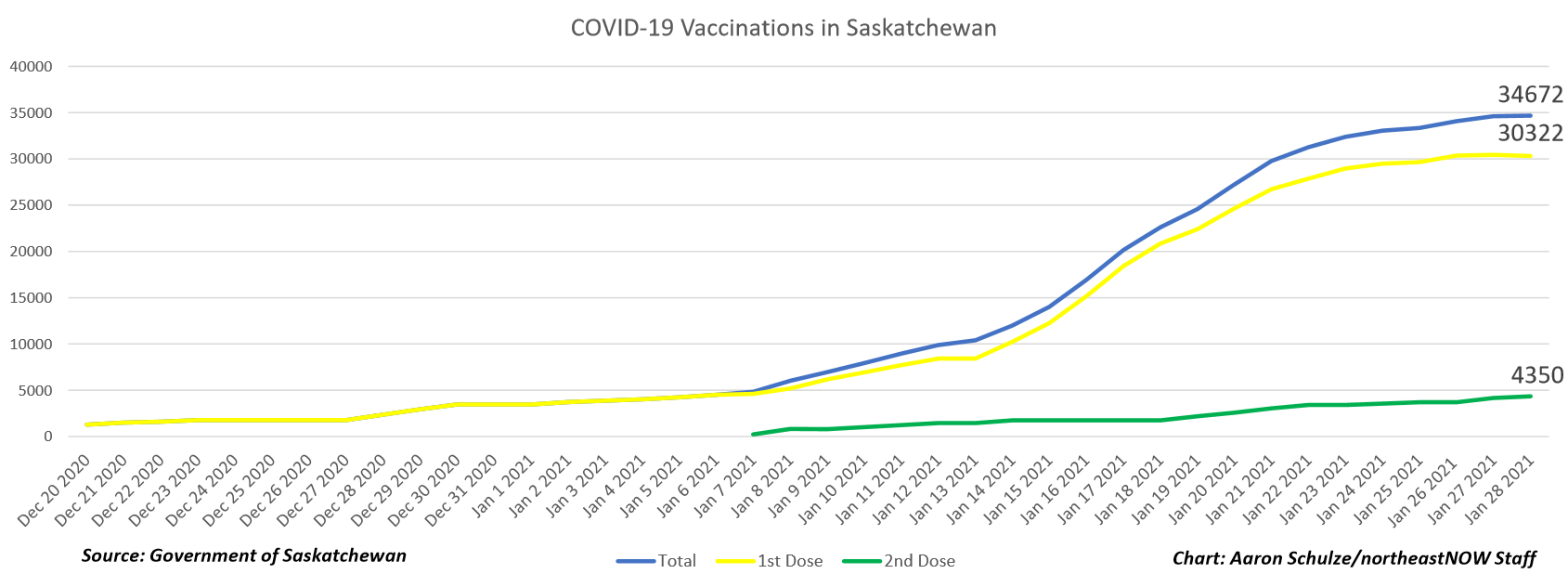 The latest COVID-19 vaccination numbers in Saskatchewan. (Aaron Schulze/northeastNOW Staff)
