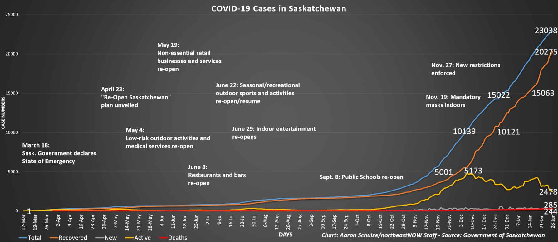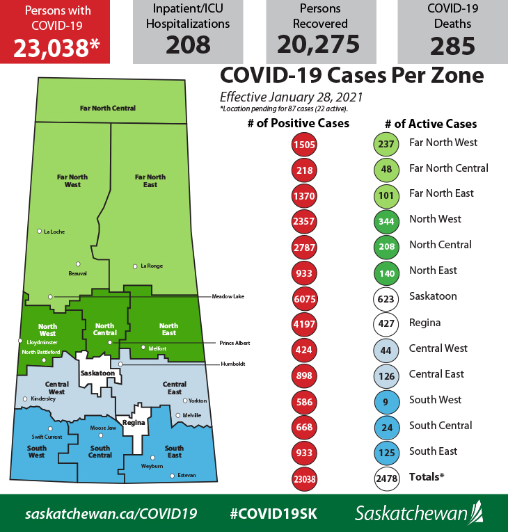 The Saskatchewan Health Authority has reported 118 COVID-19 vaccines were given yesterday bringing the provincial total to 34,672 administered in the province. According to a media release, there are 244 new cases of COVID-19, 282 recoveries and 11 deaths.