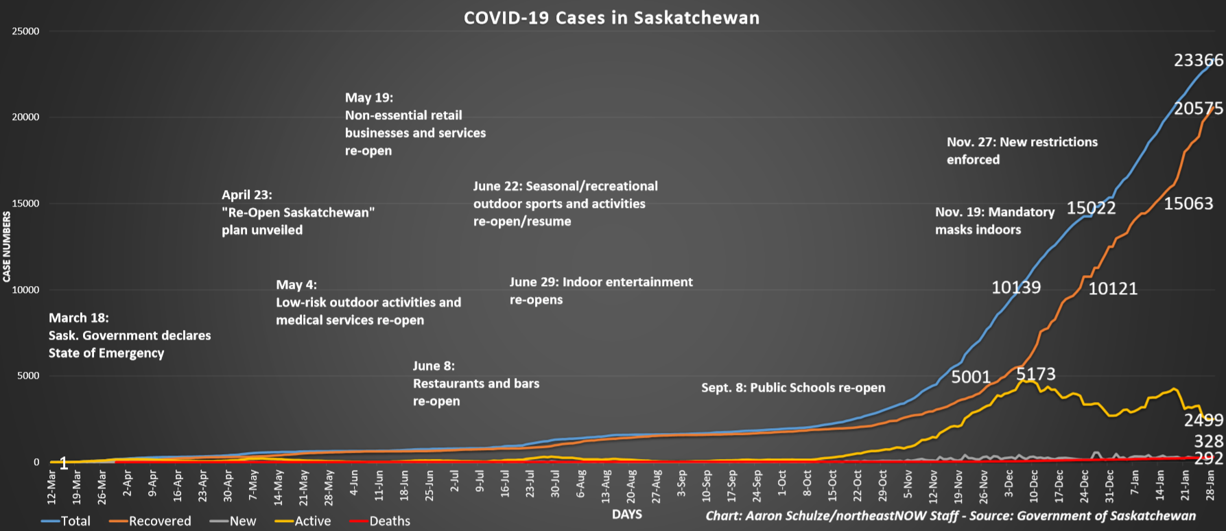 The doses were administered in the following zones: Far North Central (33), Saskatoon (233), Central East (22), and South East (20). Back-dated corrections submitted for January 27 have realized an additional 111 doses of vaccine administered.