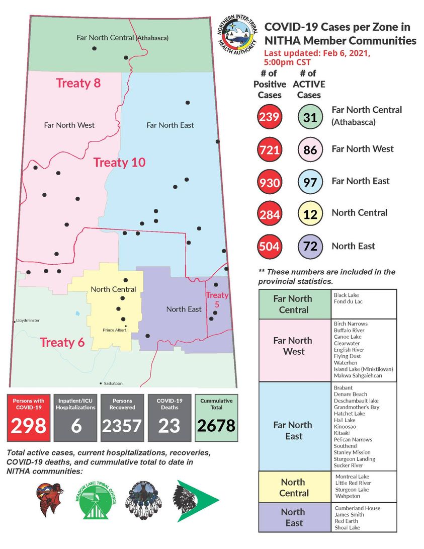 There were 774 COVID-19 vaccine doses administered on Saturday, bringing the total up to 42,296. Far North East (39), North West (115), North Central (93), and Central West (527). Back-dated corrections submitted for Jan. 18, Jan. 26, and Feb. 5 have realized an additional 268 doses of vaccine administered in the North West (238) and Far North Central (30) zones.