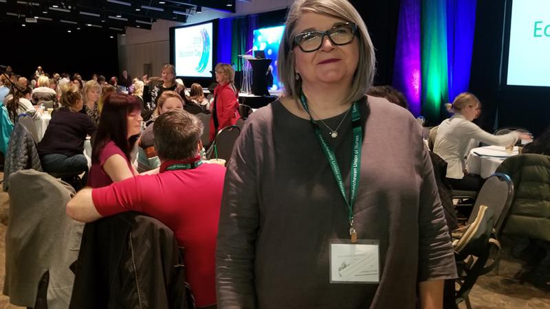 Saskatchewan Union of Nurses (SUN) president Tracy Zambory at Prairieland Park in Saskatoon on April 9, 2019. (650 CKOM)