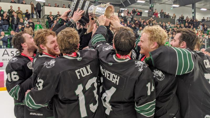 The University of Saskatchewan Huskies men's hockey team won the program's 11th Canada West championship with a 3-1 win over the UBC Thunderbirds on Feb. 29, 2020 at Merlis Belsher Place. (Keenan Sorokan/650 CKOM)