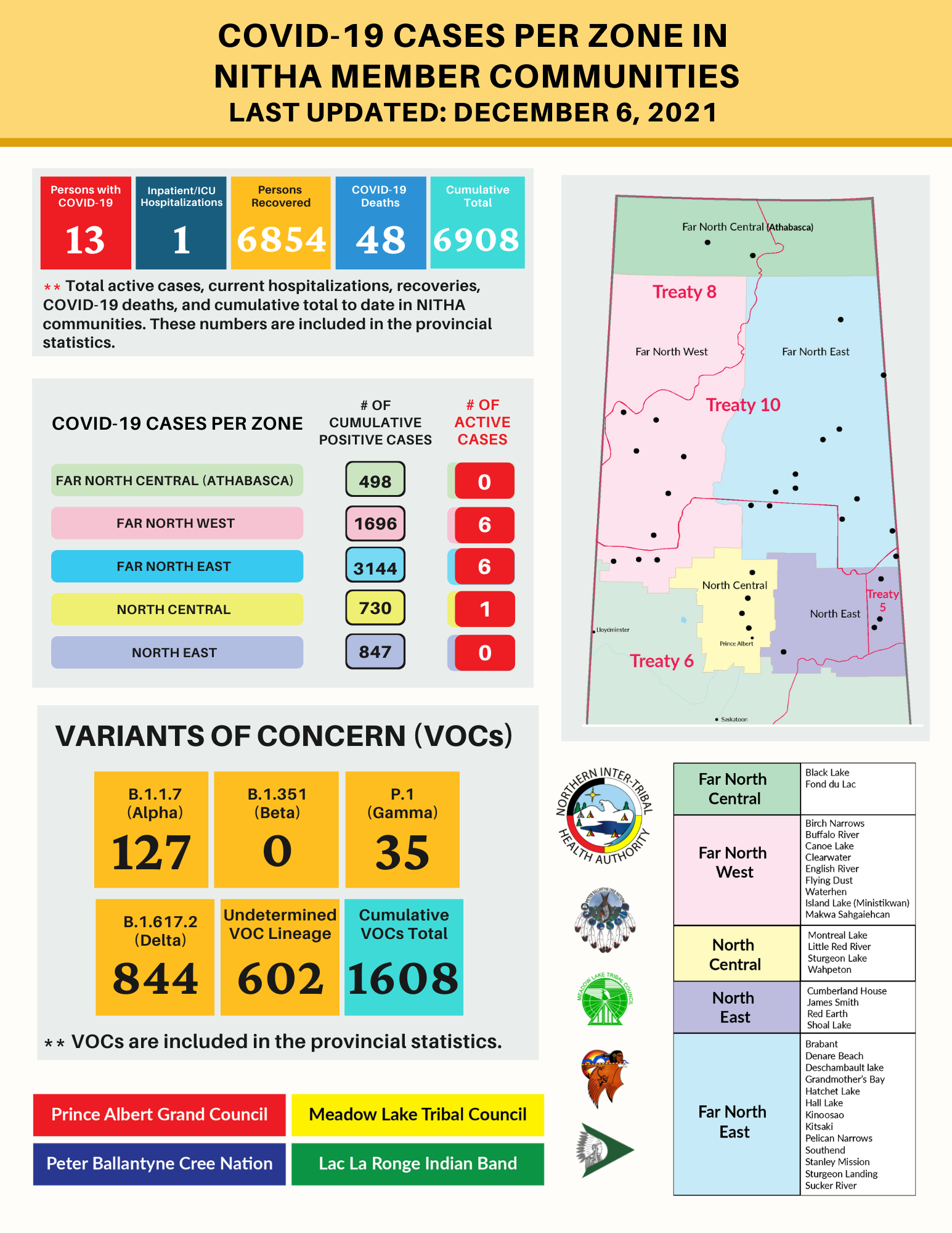 As of Dec. 6, the Northern Inter-Tribal Health Authority (NITHA) reported one new case in NITHA communities. Of the new cases, one (100 per cent) was unvaccinated.