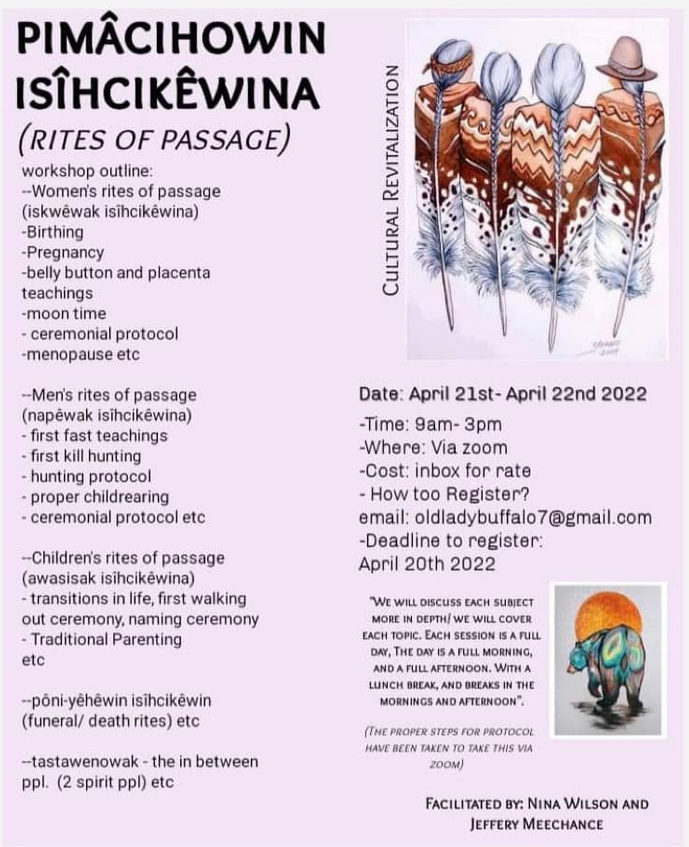 PIMÂCIHOWN ISÎHCIKÊWINA – Rites of Passage Zoom Event