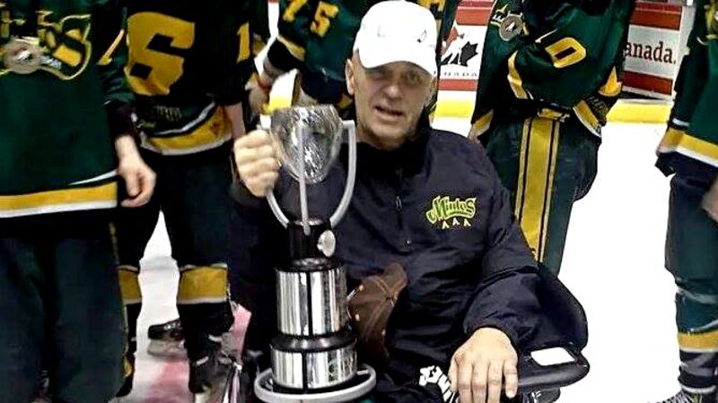 Zenon Markowsky with the 2014 Telus Cup, moments after the Mintos won it in Moose Jaw. (File photo/paNOW Staff)