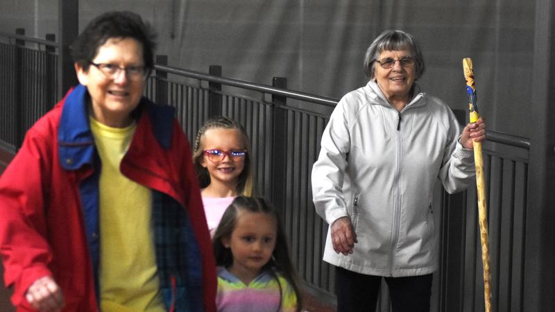 The 87-year-old was ripping around the track with a custom-made walking stick with a blue hummingbird carved into the handle. The walking stick was also made out of cactus, a gift she received during her travels years ago in Mexico.