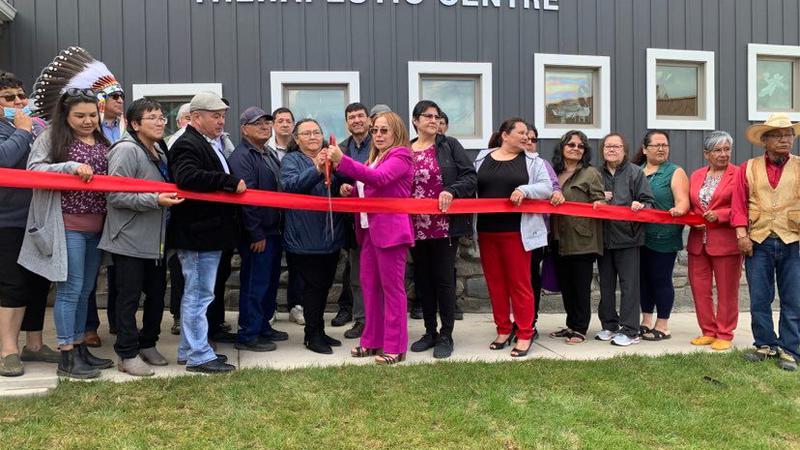 With a raising of the flags, a victory song and a cutting of the ribbon, the Peter Ballantyne Child and Family Services Therapeutic Centre officially opened.
