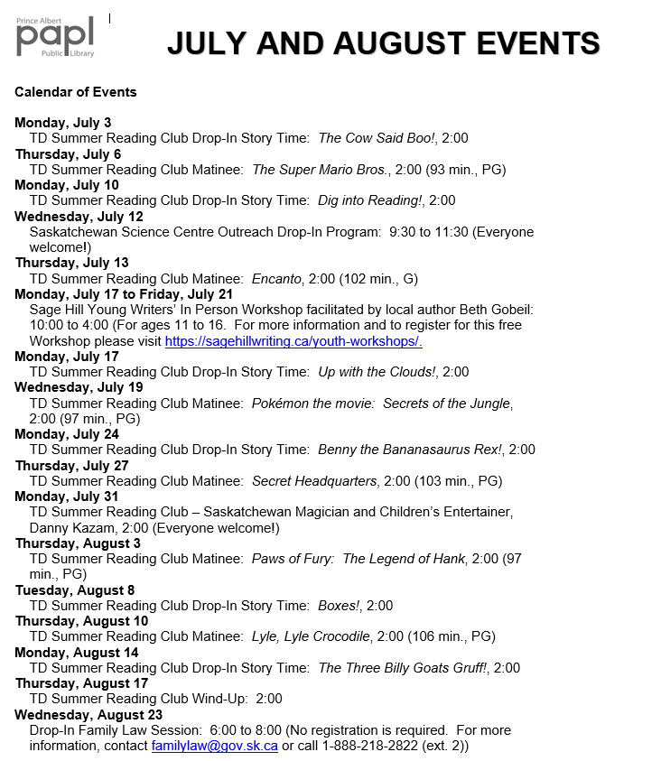 The Prince Albert Public Library has programs, activities and more for all ages and interests.