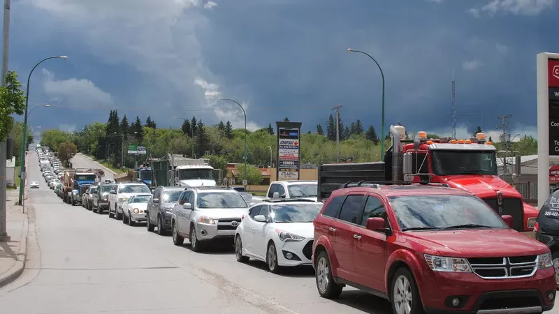 In the past, work on the Diefenbaker Bridge has led to very long lines of traffic. (file photo/paNOW)