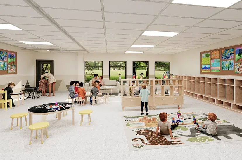 Each classroom will have areas for arts and crafts, storytime, naptime and open play areas designed to improve a child’s developmental skills.