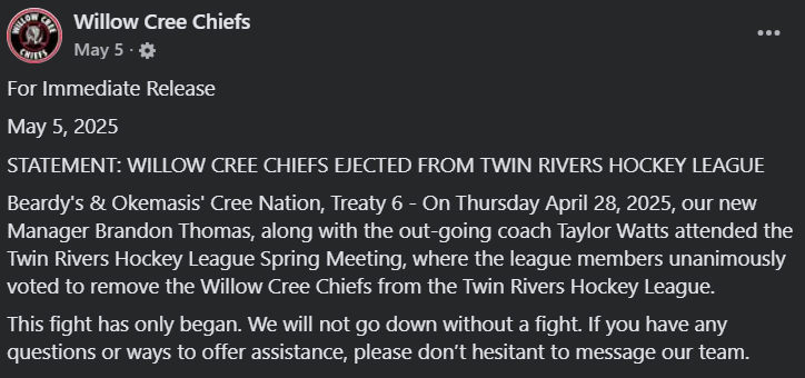 (Willow Cree Chiefs/Facebook)