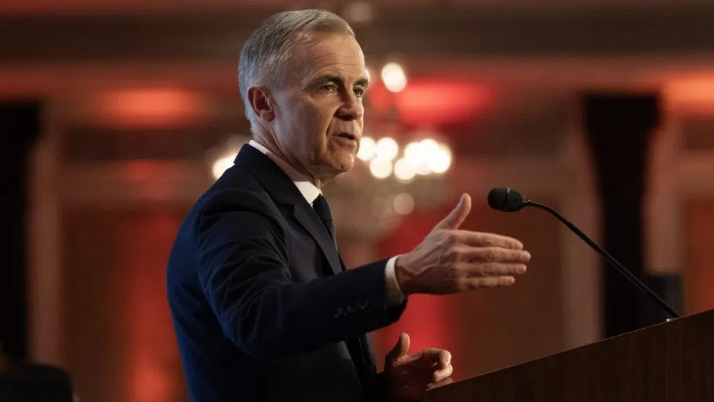 Prime Minister Mark Carney speaks at the Canada-India Growth and Investment Forum in Mumbai, India, Saturday, Feb. 28, 2026. THE CANADIAN PRESS/Adrian Wyld (Image Credit: THE CANADIAN PRESS/Adrian Wyld)