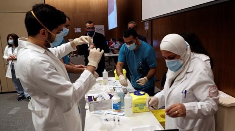 Lebanon administers 1st vaccines to health workers, elderly