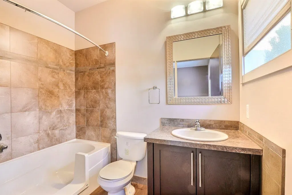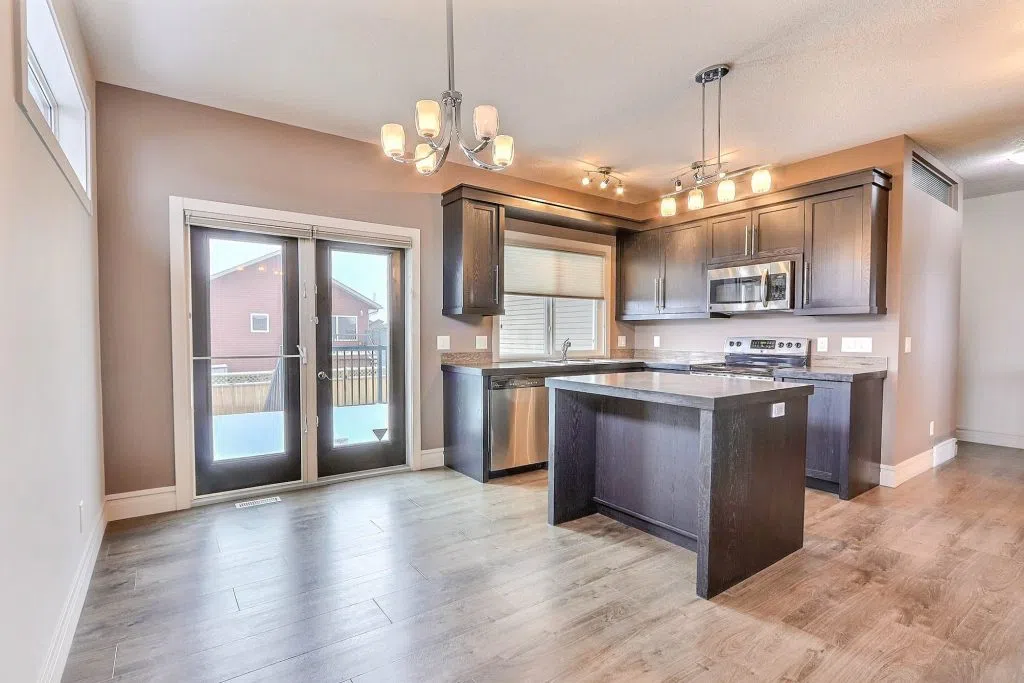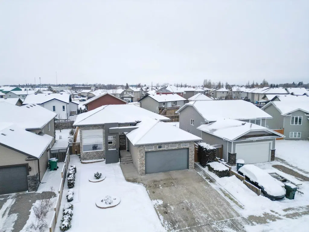 Stunning 4 bedroom, 3 bathroom bi-level in SouthWood, built in 2011. This 1,203 sq/ft home boasts beautiful curb appeal with a landscaped yard, double driveway, vinyl siding with stone accents, and a partially fenced yard with garden beds and underground sprinklers. Inside, a modern concept awaits with spacious front entrance providing direct garage access. Enjoy 9′ ceilings, laminate and vinyl tile flooring and large windows throughout. A seamless flow through the bright and inviting living room to the kitchen featuring dark cabinets, stainless steel appliances, island, and patio door access to the back deck. The primary bedroom includes a walk-in closet and 4-piece ensuite. The sprawling basement boasts a massive rec room, bedroom, 3 piece bathroom, and ample storage. Other notable features include new N/G forced air heater (2025), N/G hot water heater (2024) and air to air exchanger. A great opportunity for a growing family looking for a modern and spacious home.