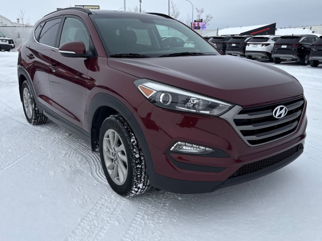 The 2016 Hyundai Tucson AWD 4dr 2.0L Luxury emerges as a striking choice for anyone seeking a capable SUV with confident handling on various terrains, accentuated by its elegant AWD capabilities. This Tucson comes in a classic Black exterior, paired with a sleek, modern design that stands out in any setting.Inside, the Tucson Luxury offers a spacious environment with tastefully appointed Black leather seats, creating a refined and comfortable atmosphere for all passengers. The interior is well-equipped with features like heated front and rear seats, a leather-wrapped heated steering wheel, and a leather/piano black gear shifter, offering a touch of luxury and comfort.Technologically advanced, this vehicle includes a state-of-the-art navigation system, a reliable backup camera, and convenient Bluetooth connectivity. Safety features are abundant, with brake assist, lane assist, and numerous driver assistance technologies ensuring peace of mind on the road. Keep connected with features such as satellite radio and an encompassing sound experience.Perfectly suited for families and adventure-seekers, this Hyundai Tucson combines style, function, and the latest technology. Contact us today to learn how you can make this exceptional SUV yours and experience the Hyundai difference first-hand.