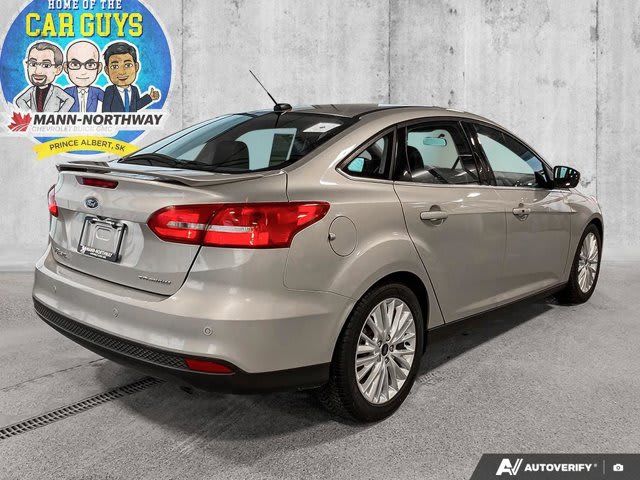 Dressed in elegant White Gold Metallic, this exceptional 2017 Ford Focus Titanium delivers a premium driving experience, blending sophisticated design with intuitive technology, perfect for navigating city streets or cruising open roads. With 152,633 kilometers on the odometer, this well-maintained sedan promises reliability and enjoyment for its next owner.Inside, you’ll discover luxurious **heated leather seats**, providing supreme comfort on chilly mornings, and an expansive **sun/moonroof** that bathes the cabin in natural light, enhancing every journey. Experience modern convenience with **keyless entry and start**, complemented by **remote engine start** ��� ideal for preparing your vehicle in any weather. For added peace of mind and effortless maneuvering, parking is a breeze thanks to the integrated **back-up camera and rear parking aid**.Safety is paramount, with a comprehensive suite of airbags and a commendable 5-star overall safety rating from the National Highway Traffic Safety Administration (NHTSA), ensuring confidence on every drive. This Titanium model comes fully equipped with the amenities you expect, offering an impressive infotainment system with Bluetooth connectivity and smart device integration to keep you connected and entertained on the go. Its front-wheel drive and nimble handling make it a joy to drive, while its refined interior truly sets it apart in its class.Don’t miss the opportunity to own this stylish and exceptionally well-equipped Ford Focus Titanium. Contact us today to schedule your test drive and experience firsthand everything this remarkable sedan has to offer.Visit us at Mann-Northway Auto, 500 Marquis Road, Prince Albert SK S6V 8B3.