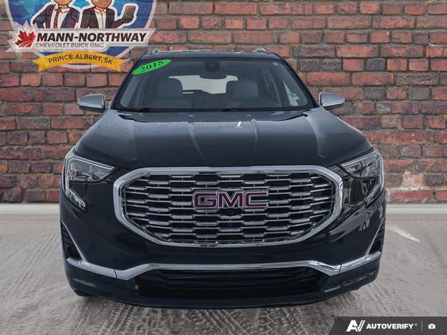 Imagine effortless commutes and luxurious weekend escapes in the sophisticated 2018 GMC Terrain Denali. This sleek black Sport Utility vehicle, with its inviting Ebony interior, embodies refinement and power, making every journey a pleasure. Under the hood lies a spirited 2.0L Turbo 4-cylinder engine, delivering an impressive 252 horsepower and 260 lb-ft of torque, ensuring responsive performance whether navigating city streets or cruising on the open highway. Coupled with its advanced All-Wheel Drive system, the Terrain Denali provides exceptional stability and control in diverse conditions.Your peace of mind is paramount, which is why the 2018 GMC Terrain Denali was awarded a 5-star overall safety rating by the National Highway Traffic Safety Administration (NHTSA) and named an Insurance Institute for Highway Safety (IIHS) Top Safety Pick. It further enhances safety with an intelligent suite of features, including a Blind Spot Monitor, Rear Parking Aid, and Cross-Traffic Alert, helping you navigate complex environments with greater awareness.Step inside and discover an environment crafted for ultimate comfort and convenience. The premium Denali trim ensures a host of upscale amenities. Stay on course with the integrated Navigation System, making unknown roads a thing of the past. Indulge in year-round climate perfection with luxurious Cooled Front Seats for those warm summer days and comforting Heated Rear Seats and a Heated Steering Wheel to chase away the winter chill. Practicality is also key; the Hands-Free Liftgate simplifies loading and unloading, offering seamless access to your cargo space with a simple kick gesture.This meticulously maintained 2018 GMC Terrain Denali shows 111,146 kilometers on the odometer and is ready for its next adventure. Don’t miss the opportunity to experience this exceptional vehicle firsthand.We invite you to contact us today to schedule your personal viewing and test drive. Visit Mann-Northway Auto at 500 Marquis Road, Prince Albert SK S6V 8B3.