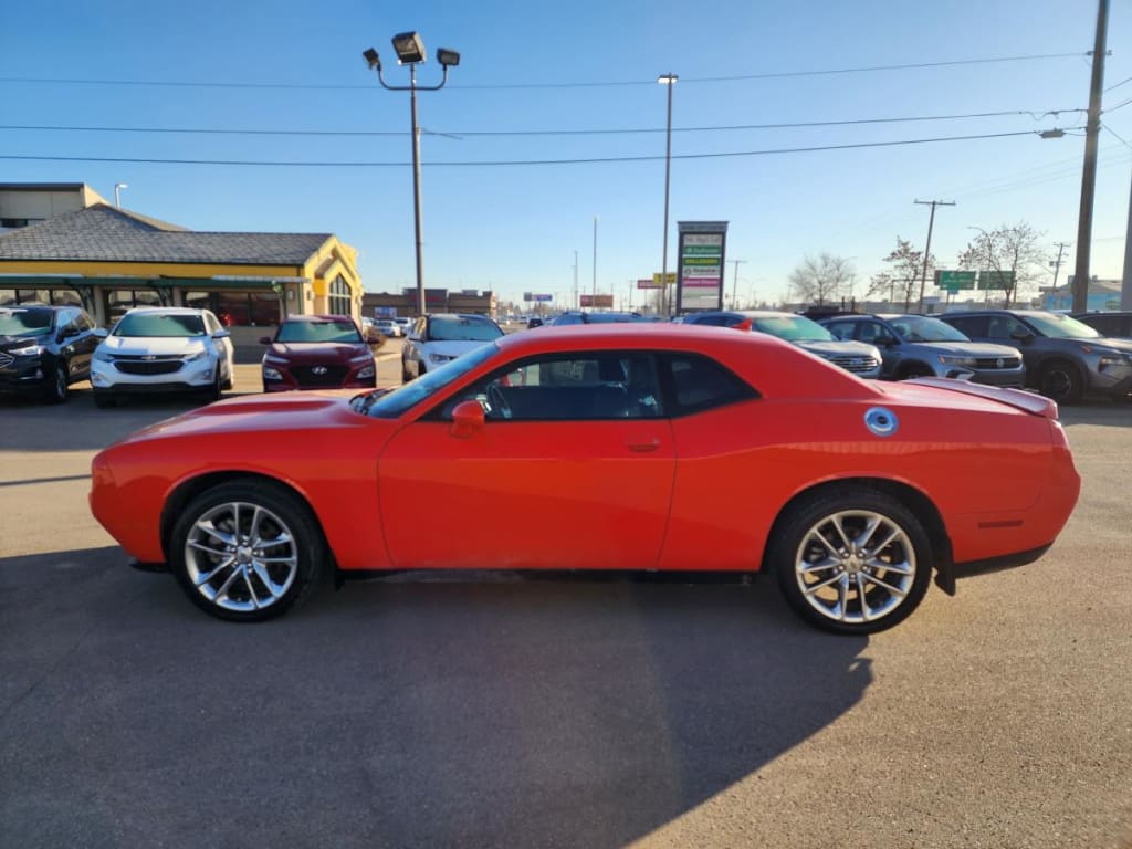 Experience pure muscle and modern design with the 2022 Dodge Challenger GT, now available at DriveNation Saskatoon. This coupe stands out with its bold orange exterior and delivers a thrilling drive powered by the renowned 3.6-litre Pentastar VVT V6 engine paired to an 8-speed TorqueFlite automatic transmission. With only 32,214 km on the odometer, this Challenger GT is ready for new adventures on Saskatchewan roads.