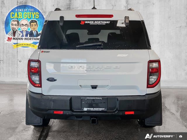 Beneath the striking Oxford White exterior of this 2024 Ford Bronco Sport Big Bend lies a highly capable turbocharged 1.5-liter EcoBoost engine, engineered to deliver both energetic performance and impressive fuel efficiency. Its advanced Four Wheel Drive system is prepared to confidently navigate any path, from city streets to unpaved backroads, ensuring unwavering control and stability. With a mere 22,000 kilometers, this Sport Utility is eager to take on new adventures, blending rugged appeal with everyday practicality.Step inside to the welcoming Medium Dark Slate interior, where comfort meets intelligent design. An array of advanced driver assistance features, including Blind Spot Monitor, Lane Keeping Assist, and Front Collision Mitigation, are onboard to enhance your peace of mind and contribute to safer journeys. These technologies work in harmony to keep you aware of your surroundings and actively assist in preventing potential incidents, making every drive more secure. During cooler weather, you and your passengers will appreciate the convenience of the heated front seats, ensuring a warm and comfortable ride from the moment you set off. This Bronco Sport truly stands out as a versatile companion for both your daily commute and weekend escapes. Its thoughtfully designed cabin provides ample space and user-friendly features, all contributing to a driving experience that���s as enjoyable as it is capable. Discover how this vehicle seamlessly blends adventure-ready performance with sophisticated everyday comfort.Don’t miss the opportunity to explore this adventurous 2024 Ford Bronco Sport Big Bend for yourself. Visit us today to experience its blend of capability and comfort.Contact Mann-Northway Auto to schedule your test drive or for more information. Find us at 500 Marquis Road, Prince Albert SK S6V 8B3.