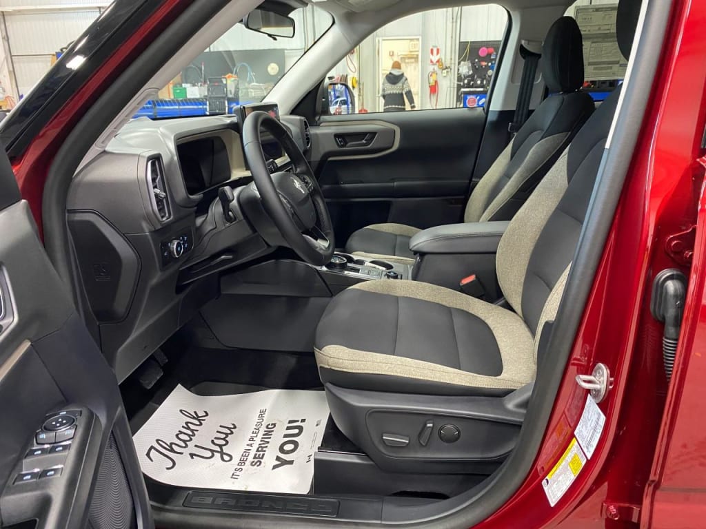 Introducing the stunning 2025 Ford Bronco Sport Big Bend 4×4, dressed in a vibrant Red exterior and equipped with an advanced 4×4 drivetrain, offering superior handling on diverse terrains. This new SUV seamlessly combines rugged capability with modern comforts to enhance your driving experience.The Ford Bronco Sport Big Bend boasts an eye-catching design, highlighted by sleek alloy wheels and a commanding presence that turns heads wherever you go. Inside, luxuriate in the spacious Gray interior, where functionality meets comfort, offering heated seats and power-adjustable features to tailor your drive.The seamless technology suite ensures you stay connected and secure, featuring an intuitive backup camera, smart device integration, and a responsive touch interface via Bluetooth connection and satellite radio. Safety is paramount with cutting-edge features like brake assist, lane assist, and adaptive cruise control from the standard package, ensuring peace of mind on every journey.This is the perfect SUV for adventurers and thrill-seekers who desire a vehicle that not only performs off-road but also offers convenience during their daily commutes. Dont miss out on experiencing this versatile SUV. Contact the dealership today for more information and to schedule your test drive of the 2025 Ford Bronco Sport Big Bend. Your next adventure awaits!