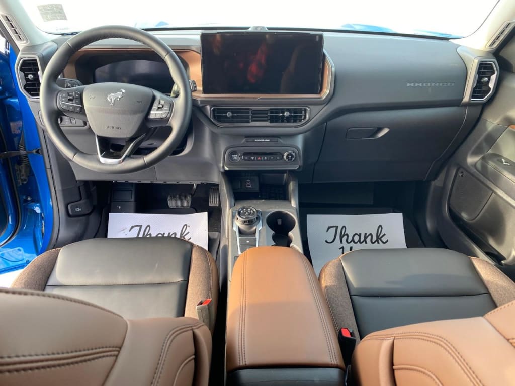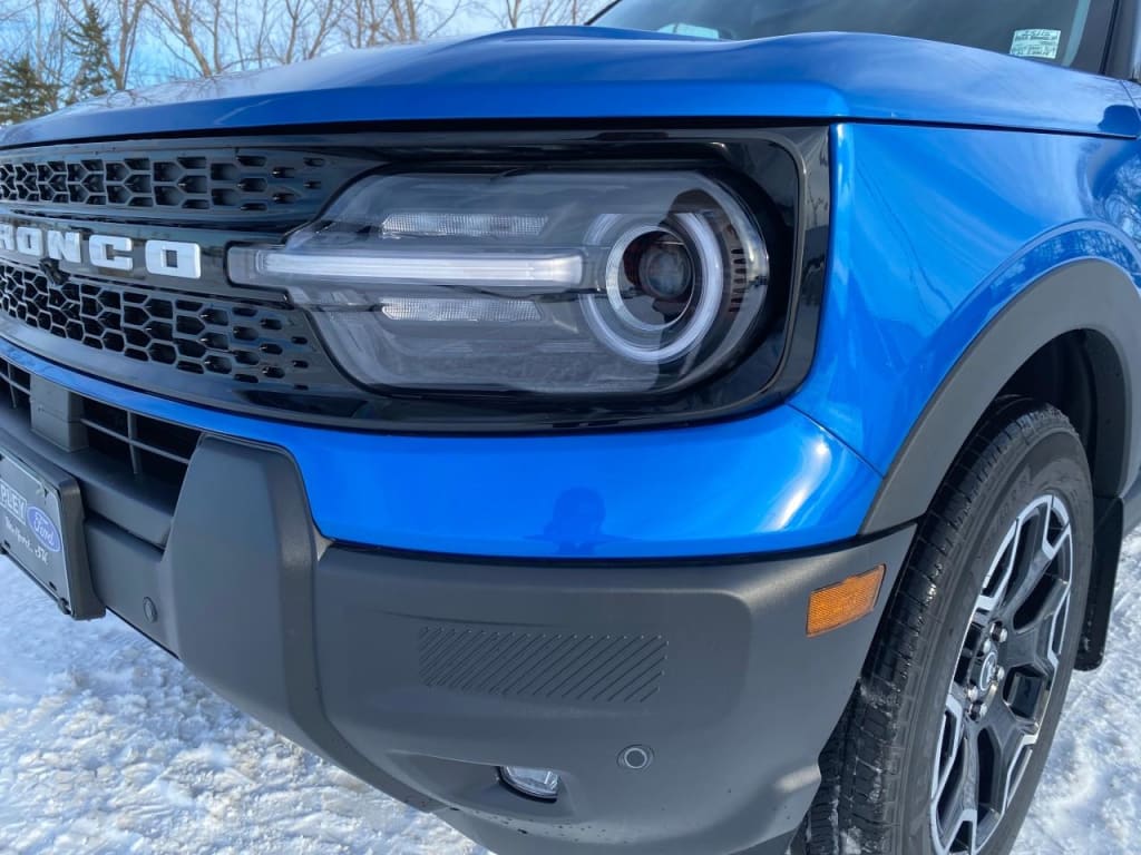The new 2025 Ford Bronco Sport Outer Banks 4×4 in blue is a remarkable SUV designed to tackle any terrain with confidence and style. With its 4×4 drivetrain and a smooth automatic transmission, this vehicle promises a driving experience that combines versatility with comfort.On the outside, the Bronco Sport commands attention with its rugged yet elegant design, complemented by sleek alloy wheels that emphasize its adventurous spirit. Inside, the sophisticated black interior offers heated front seats and a heated steering wheel, ensuring comfort in cooler climates. With power seats and windows, the cabin is both functional and luxurious.This SUV is equipped with the latest technology, featuring smart device integration, satellite radio, and a backup camera for added convenience. Safety is paramount, with lane assist, adaptive cruise control, parking sensors, and brake assist providing peace of mind on every journey. The remote start functionality and keyless entry add additional ease to your daily routine.Perfect for adventure seekers and city drivers alike, the 2025 Ford Bronco Sport Outer Banks is ready for your next adventure. Contact us today to schedule a test drive and experience the cutting-edge features of this dynamic SUV for yourself.