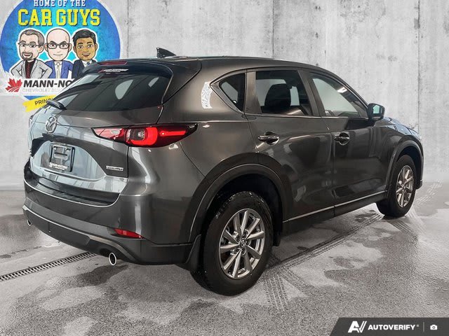 Command every drive with the confident All Wheel Drive of this 2025 Mazda CX-5 GX. This stylish gray Sport Utility vehicle, with just 27,000 kilometers, is ready to deliver a premium driving experience for both your daily commute and weekend escapes. Its well-maintained presence and elegant ebony interior are instantly welcoming. Engineered for modern comfort, you’ll appreciate the luxury of Heated Front Seats, providing warmth on cooler days and enhancing every journey. Safety is paramount, and this CX-5 GX provides exceptional peace of mind with intelligent features like the Blind Spot Monitor, actively helping you navigate busy roads with heightened awareness. For effortless highway travel, engage the advanced Adaptive Cruise Control, which maintains a safe distance from vehicles ahead, making long trips significantly less strenuous. The Mazda CX-5 is celebrated for its agile handling and spirited performance, ensuring an engaging drive every time you get behind the wheel. Its blend of utility, sophistication, and advanced technology positions it as an outstanding choice for anyone seeking a versatile and dependable SUV. Discover why the CX-5 GX perfectly balances functionality with driving pleasure.We invite you to experience the refined dynamics and superior features of this exceptional Mazda. Take the first step towards your new vehicle by contacting us to schedule a viewing and test drive today.Find us at Mann-Northway Auto, 500 Marquis Road, Prince Albert SK S6V 8B3.