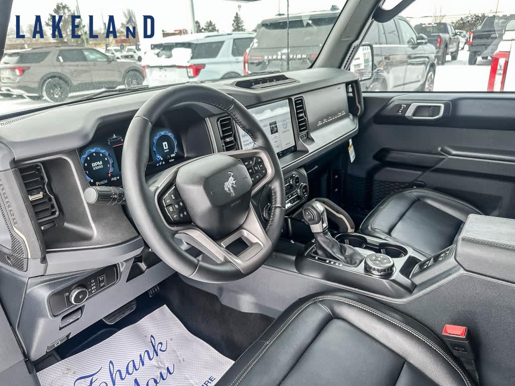 The 2026 Ford Bronco Badlands shines in stunning white with its robust 4×4 drivetrain delivering superior handling and performance on all terrains. Whether youre navigating city streets or off-road trails, this SUV offers a seamless driving experience.The exterior of this vehicle exudes rugged charm with sophisticated accents, while the interior invites you into a world of comfort and practicality, adorned with top-tier finishes and cutting-edge amenities. Enjoy the plush convenience of heated front seats under a beautifully crafted leather steering wheel, ensuring every journey is both enjoyable and stylish.Equipped with leading-edge technology, the Bronco Badlands boasts a 12-speaker BO Sound System by Bang Olufsen, and features like adaptive cruise control and Evasive Steering Assist offer enhanced safety on the road. Stay connected and informed with the information on demand panel, while the 360-Degree Camera and front parking sensors simplify your parking and driving experience. Key driver-assistance features such as lane assist and smart device integration assure peace of mind with every drive.Perfect for adventure seekers and city dwellers alike, the Ford Bronco Badlands 4 Door 4×4 blends power, versatility, and state-of-the-art technology. Contact our dealership today for more information and to take this impressive SUV for a test drive.