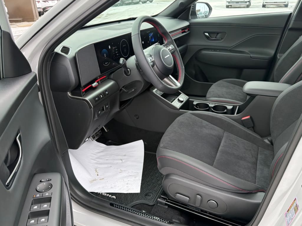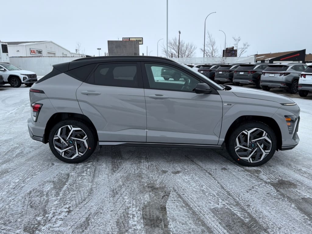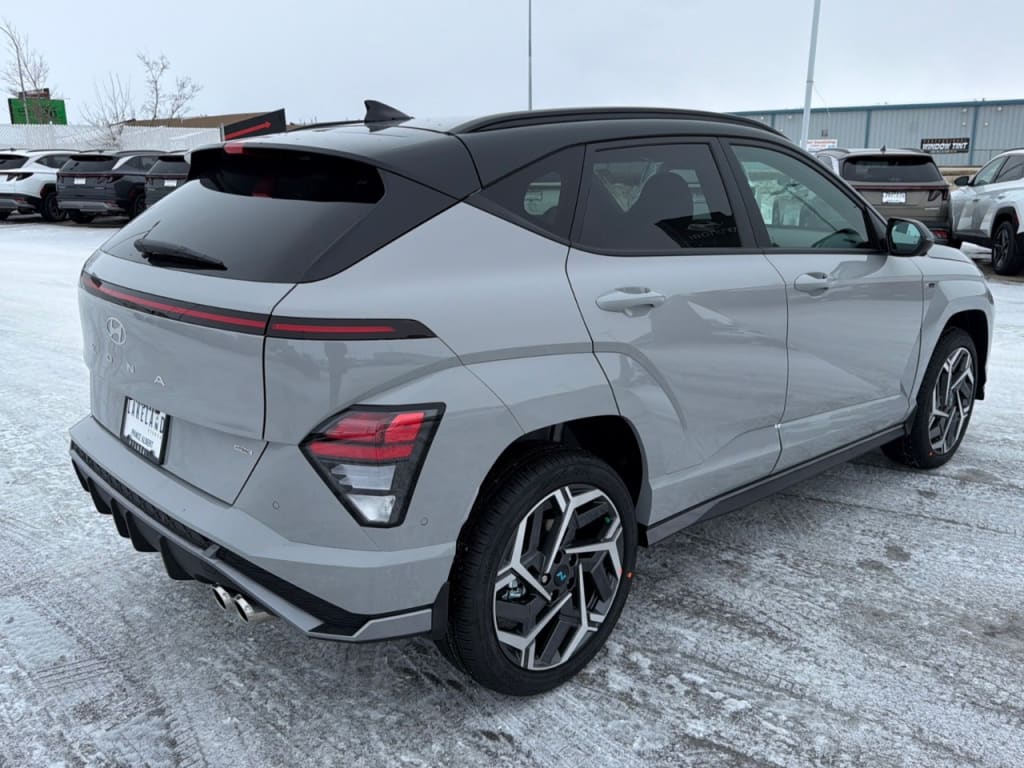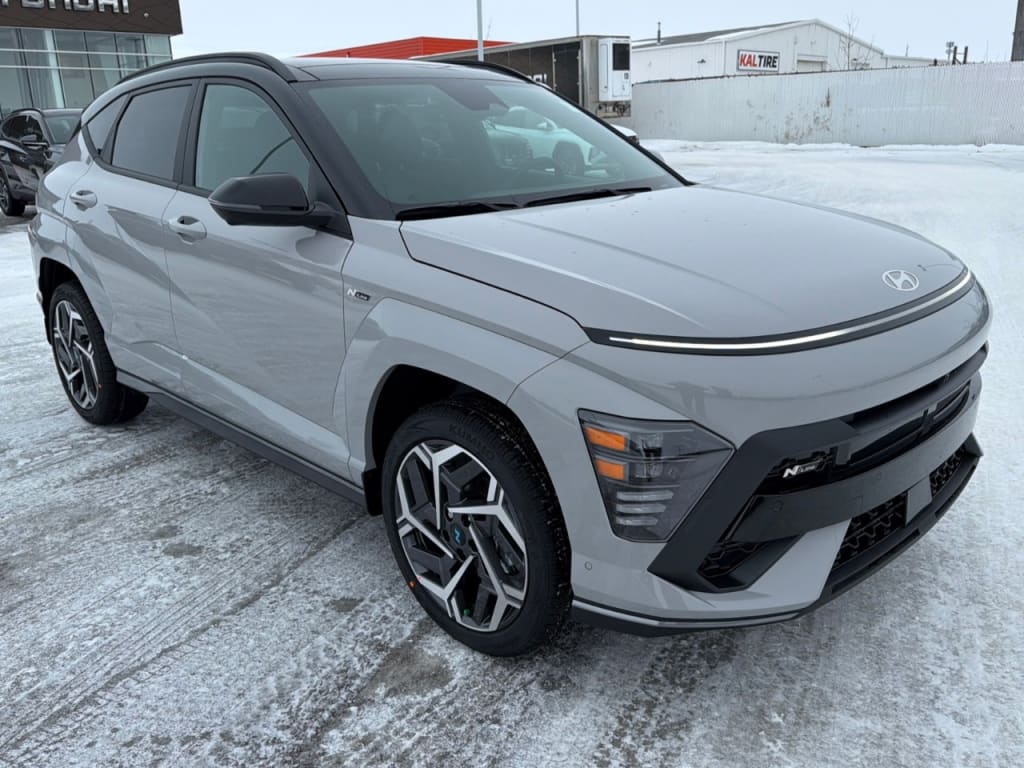 Introducing the 2026 Hyundai Kona N Line Ultimate, now available in a striking Gray finish and equipped with AWD for optimal traction and control. This dynamic SUV is designed to handle any adventure with a refined suspension system that enhances your driving experience. The Kona N Line Ultimate stands out with its stylish two-tone roof and eye-catching alloy wheels that elevate its modern aesthetic. Inside, the Black interior exudes elegance and sophistication, featuring leather seats and a leather steering wheel, providing utmost comfort during your journeys. Stay connected and in control with the latest technology offerings including a cutting-edge navigation system, smart device integration, and an intuitive Bluetooth connection. Safety is paramount with advanced features like adaptive cruise control, lane assist, and automatic parking, ensuring peace of mind on every drive. The Kona also boasts a backup camera and parking sensors, facilitating effortless maneuvering in tight spaces. Ideal for those who appreciate both style and performance, the 2026 Hyundai Kona suits drivers seeking versatility without compromising on luxury. We invite you to contact our dealership for more information or to schedule a test drive. Experience firsthand how this SUV can enhance your daily adventures.