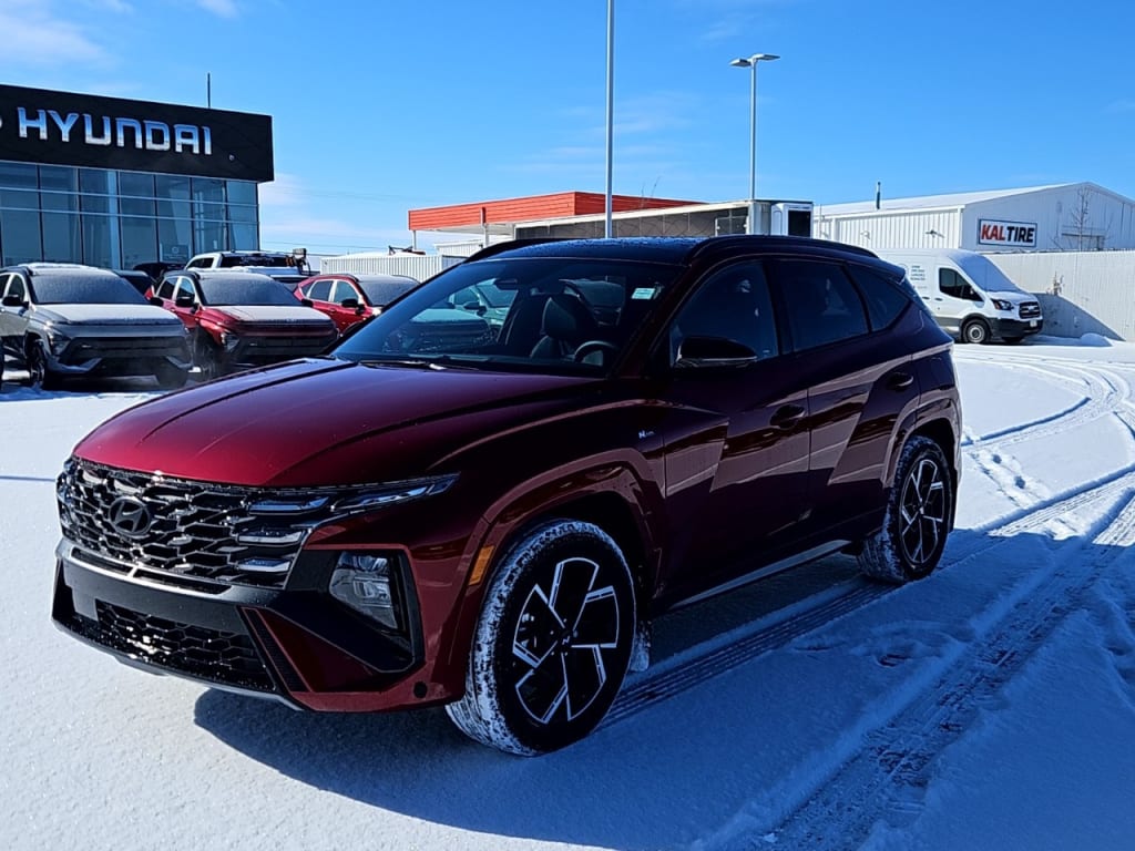 Presenting the 2026 Hyundai Tucson Hybrid N-Line in a striking All-Wheel Drive configuration, masterfully designed to enhance both handling and style. This SUV is a perfect blend of sophistication and sportiness, exuding a commanding presence on the road.The exterior showcases alloy wheels and a sleek sunroof/moonroof, providing a dynamic and eye-catching silhouette. Step inside to discover a refined black interior featuring leather seats and a heated leather steering wheel. Comfort is paramount here, with heated front and rear seats ensuring every drive is enjoyable, no matter the season.Technology elevates your experience with smart device integration and a remote start feature for added convenience. Enjoy clear navigation with the backup camera and stay connected via Bluetooth. Safety features include brake assist, lane assist, and adaptive cruise control, making it an ideal choice for the modern driver who values security on the road.Perfect for adventurous families and urban commuters alike, the Tucson Hybrid N-Line AWD is designed to meet diverse needs. Contact us today to experience unparalleled innovation and luxury in your next vehicle.