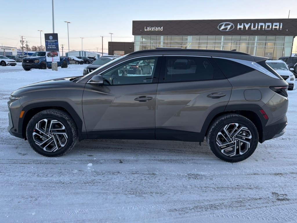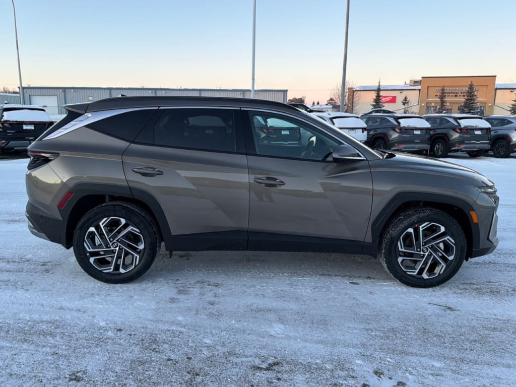 NewThe 2026 Hyundai Tucson Hybrid Ultimate AWD in an elegant brown finish is the perfect SUV for those who prioritize all-wheel drive handling and sophisticated design. Its automatic transmission and AWD drivetrain ensure youre ready for any road or weather conditions, giving you both confidence and comfort in your journeys.The exterior of this new Tucson Hybrid is highlighted by stylish alloy wheels and a modern sunroof, while the stunning brown color adds a touch of sophistication. The interior, in a luxurious black leather, provides both comfort and style, with features such as heated and cooled front seats, a heated steering wheel wrapped in leather, and an expansive cabin that accommodates all your needs.Immerse yourself in advanced technology with a host of features that include smart device integration, a backup camera, and satellite radio. Enhance your driving experience with adaptive cruise control, lane assist, and a suite of other driver assistance features designed to keep you safe on every drive. The convenience of keyless entry, power seats, and remote start further elevates your driving experience.This SUV is ideal for families, adventurers, and tech enthusiasts alike, offering a blend of comfort, luxury, and cutting-edge features. Dont hesitate to contact our dealership today to find out more and arrange your test drive. Let the Hyundai Tucson Hybrid Ultimate AWD be the next step in your driving journey.