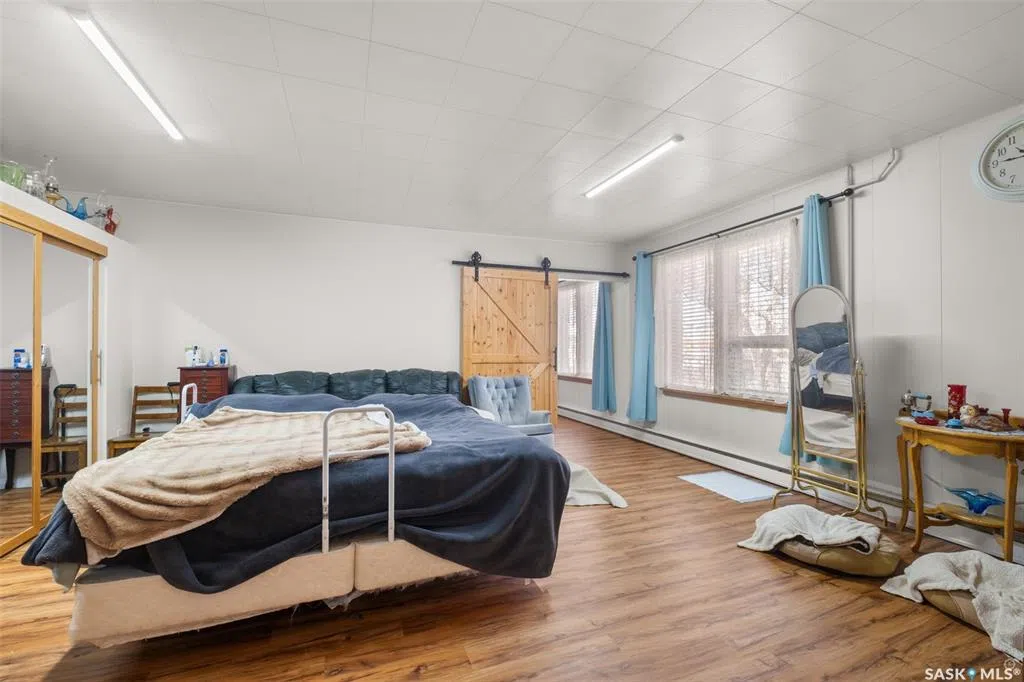 Extraordinary 2 storey residence situated on a beautifully landscaped lot in the heart of St. Isidore de Bellevue! Currently used as a private residence, the property presents a rare opportunity for those seeking space, flexibility and future potential. The main floor showcases a newly renovated kitchen that has quartz countertops, stainless steel appliances and ample cabinetry. A large dining and sitting area, plus a spacious living room provide plenty of room for hosting. The main level also includes a large primary bedroom with a new luxurious 5 pc ensuite featuring double sinks, a modern vanity, stand-up shower and a separate soaker tub. There is also a 2 pc bathroom, den and a laundry room that complete the main floor. The second level offers nine more bedrooms, a sunroom, 2 pc bathroom and a 3 pc bathroom with a stand-up shower providing tremendous potential for a variety of living arrangements. The unfinished basement offers plenty of storage or opportunity for development. Other notable features include some new flooring and windows throughout, a new electric panel box and new PEX plumbing lines in the basement. Outside, the fully landscaped yard includes a garden area for those with a green thumb and 2 single detached garages (one insulated). The yard showcases a variety of fruit trees and berry bushes including 2 Haskap bushes, 2 apple trees, 2 grapevines, a raspberry patch, a strawberry patch and 3 asparagus patches. The property is serviced by the Wakaw rural water line and a septic tank with a lagoon system for sewer. Located beside École St. Isidore School, the property has a peaceful setting and a welcoming small town community feel. This property would make a great family home, revenue generating rental or a space suited for assisted living, foster care, a group home or even a bed and breakfast. Act now and explore the possibilities with this one of a kind property! Property next door with the following MLS SK016819 is also available to purchase.