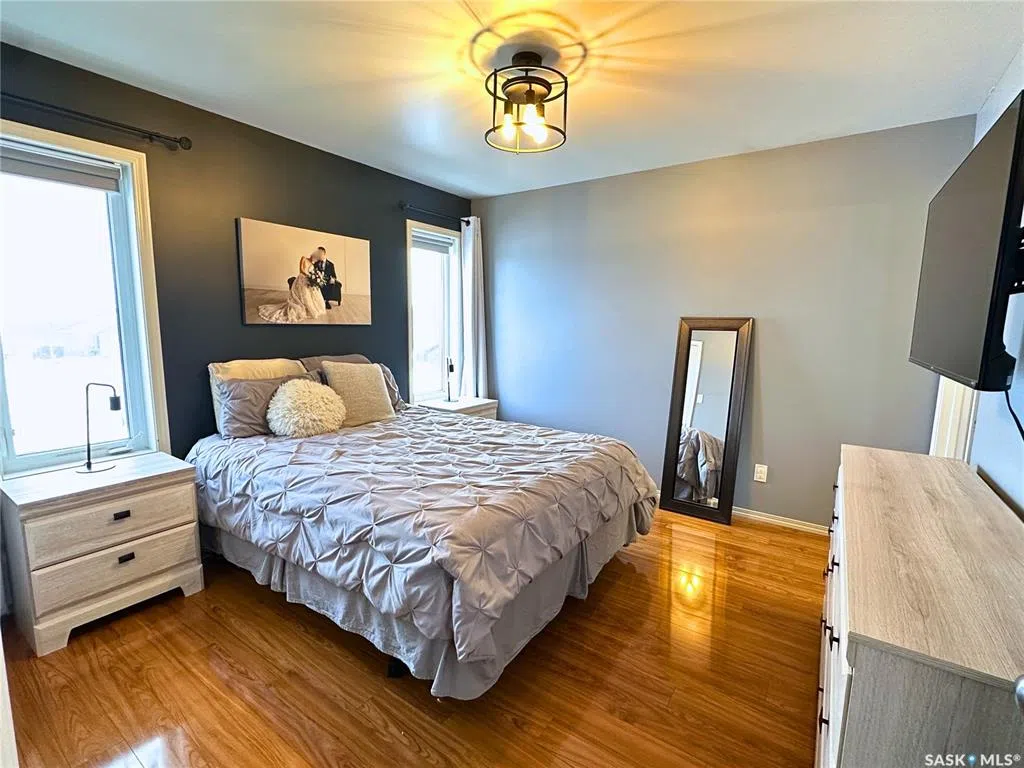 Welcome to a well-loved bi-level home in beautiful Birch Hills, designed with comfort, practicality, and family life in mind. Step into a spacious entryway that immediately sets the tone for how open and inviting this home feels. The main level features an open-concept living room and kitchen, fully refreshed and thoughtfully baby-proofed, making day-to-day life easier for families with little ones. There are three bedrooms on the main floor, including a primary bedroom with its own ensuite and a generous closet. The lower level is completely finished and adds even more space to grow. You’ll find a large family room that’s perfect for movie nights, a big bathroom, a storage/utility/laundry room, and a fourth bedroom. Off the main entry is direct access to the attached heated two-car garage, offering convenience and comfort all year long. This property sits on a fully fenced lot with no neighbors on either side, along with back-alley access and RV parking. It also includes central air conditioning, an air exchanger, and central vacuum. If you’re looking for a home that balances affordability, space, and small-town charm, this one truly has everything a young family could hope for.