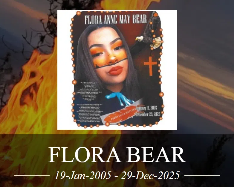 Flora Anne May Bear was born on January 19, 2005, in Saskatoon, SK, and passed away on December 29, 2025, in Sandy Bay, SK, at the age of 20 years.
