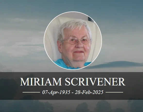 Please join us for a Celebration of Mom’s Life at 2:00 p.m., on Monday, June 23, 2025, at River Park Funeral Home, in Prince Albert. Online condolences may be left at https://www.arbormemorial.ca/en/riverpark/obituaries/miriam-scrivener/138639.html . Funeral arrangements are entrusted to the care of River Park Funeral Home, (306) 764-2727, Colette Harnett, Funeral Director.