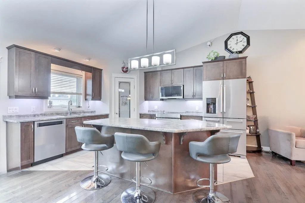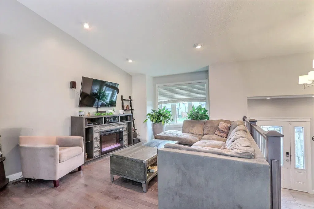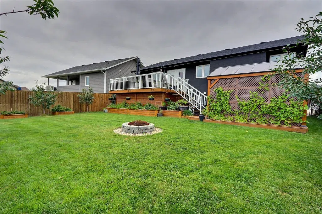 Premium Crescent Acres Location! This spacious 5 bedroom, 3 bathroom bi-level offers 1,270 sq ft of family-friendly living, built in 2014 and just steps from the park. The inviting entrance features a large closet and direct access to the 24’ x 24’ heated double garage. The open-concept main floor boasts vaulted ceilings, a bright living area, and patio doors leading to a two-tiered southwest-facing deck. The kitchen is equipped with dark cabinetry, arborite counters, stainless steel appliances, a corner pantry, and a large island with bar seating. Upstairs you’ll find three bedrooms, including a spacious primary suite with ensuite. The fully developed basement is filled with natural light from large windows and offers a massive rec room with natural gas fireplace, two additional bedrooms, and a full bathroom — all with high ceilings. The yard is beautifully landscaped and fully fenced, complete with a gazebo, hot tub, natural gas BBQ hookup, and tiered deck. Located just minutes from St. Francis, Vickers and Holy Cross schools, as well as multiple parks and walking paths, this is the perfect home for a growing family!