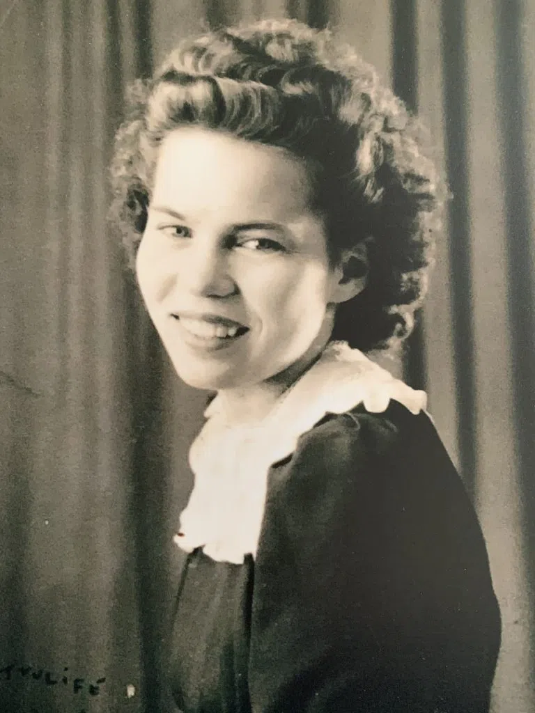 Mom was predeceased by her husband, Irvine; daughter, Gloria; son, Kevin; granddaughter Lisa, great-grandsons Josh and Tanner; siblings, George and Gladys; special cousins, Ruth, Muriel, and Arnold; birth parents, Racellia (née Grimm) and Maurice Canaday; and special parents, Pearl (née Jewitt) and John Grimm.