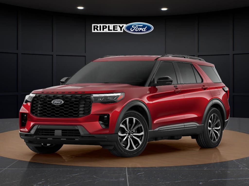 The 2026 Ford Explorer ST-Line is a bold red SUV featuring a robust 4×4 drivetrain. Its automatic transmission ensures smooth handling, perfect for any road...