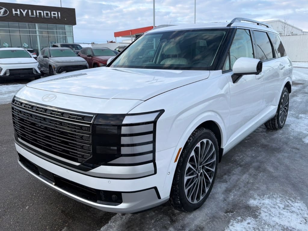 The 2026 Hyundai Palisade Hybrid Ultimate Calligraphy AWD comes in a striking white finish, combining the luxury feel of an all-wheel-drive SUV with precise handling....
