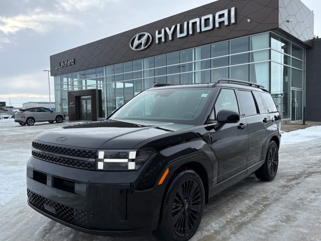 The 2026 Hyundai Santa Fe Hybrid Ultimate Calligraphy AWD, in a sleek and refined black exterior and a matching black interior, offers a premium driving...