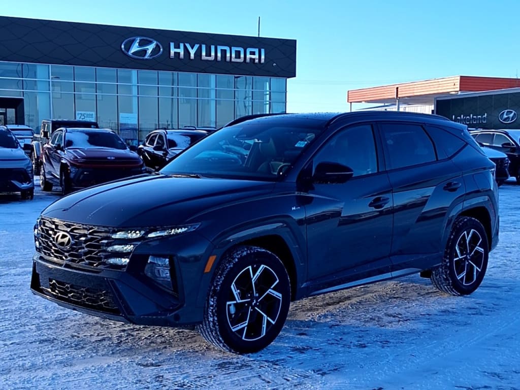 Discover the dynamic design and advanced capabilities of the 2026 Hyundai Tucson Hybrid N-Line AWD in stunning gray. This SUVs all-wheel drive ensures superior handling...