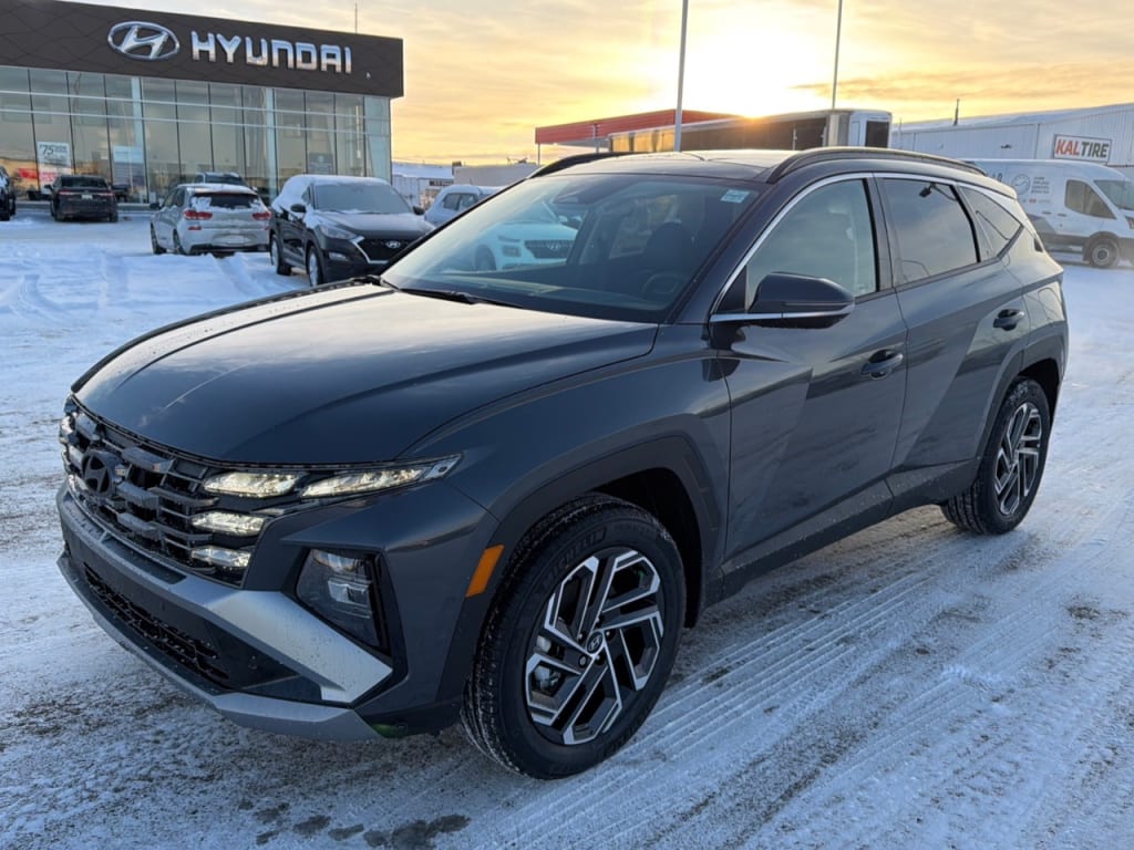 Meet the 2026 Hyundai Tucson Plug-In Hybrid Ultimate AWD, showcased in a sophisticated gray exterior paired with a seamless automatic drivetrain that ensures enhanced handling...